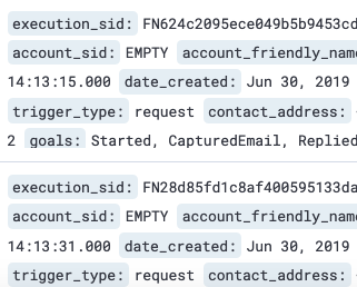 Envocate Analyze captures your Twilio Studio logs and stores every widget interaction. This data is indexed in a highly available, redundant, encrypted and performant data store that can reach petabyte scale. All you need is a link with a login and password, and you get access to a full suite of dashboards instantly.